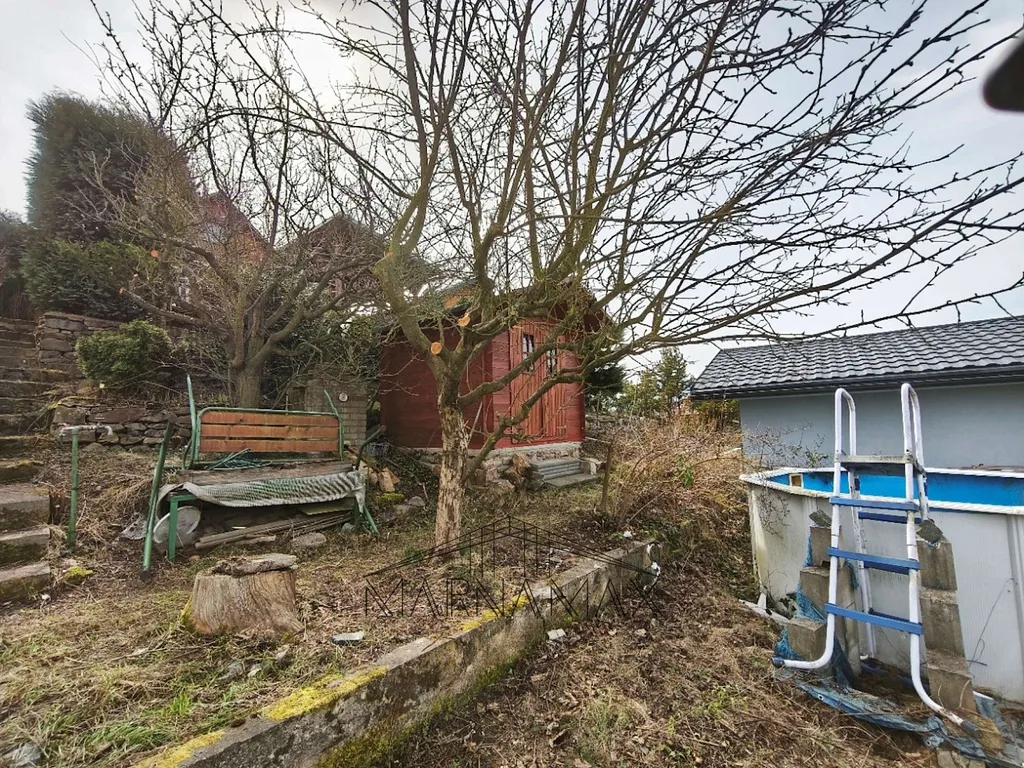 Na pozemku se nachází venkovní pergola s krbem, ideální pro posezení s rodinou či přáteli. Součástí je také zahradní domek s palandou, který nabízí možnost přespání pro návštěvy nebo poslouží jako dobrodružné zázemí pro děti či vnoučata. K dispozici je i nadzemní bazén pro letní osvěžení.
