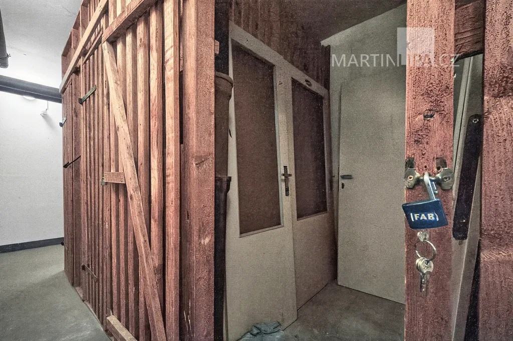 K bytu patří sklepní kóje a velké plus je přístup: výtahem se bez jediného schodu dostanete z přízemí až k bytu, ale i do sklepa. Praktické nejen pro lidi s omezeným pohybem, ale i pro kočárky nebo kola.