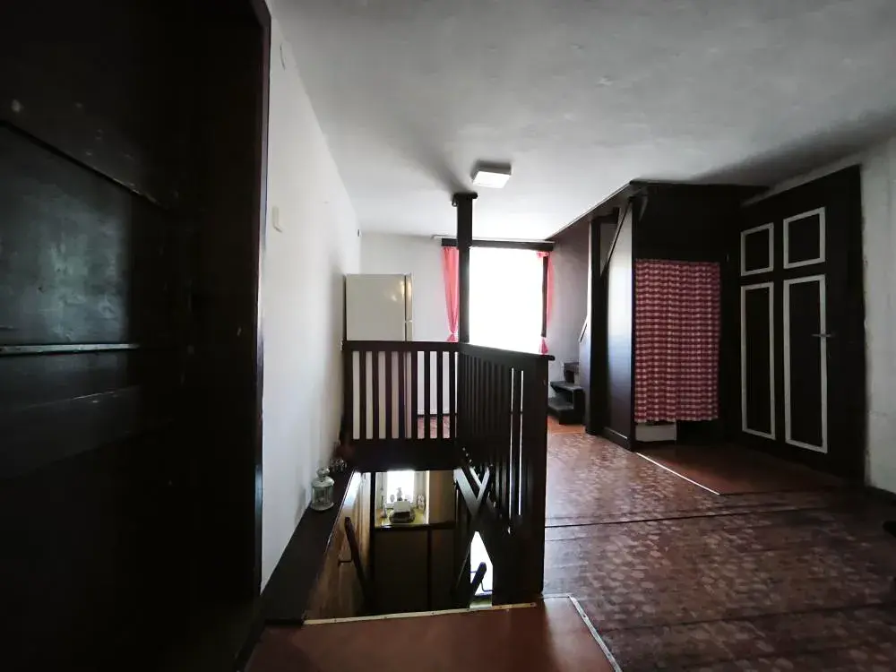Do patra vedou dřevěné schody, podlahy v patře dřevěné, stropy obloženy OSB deskami bez nátěru, v patře se nachází celkem 2 klasické kuchyně, jedna menší a dále 5 obytných místností.