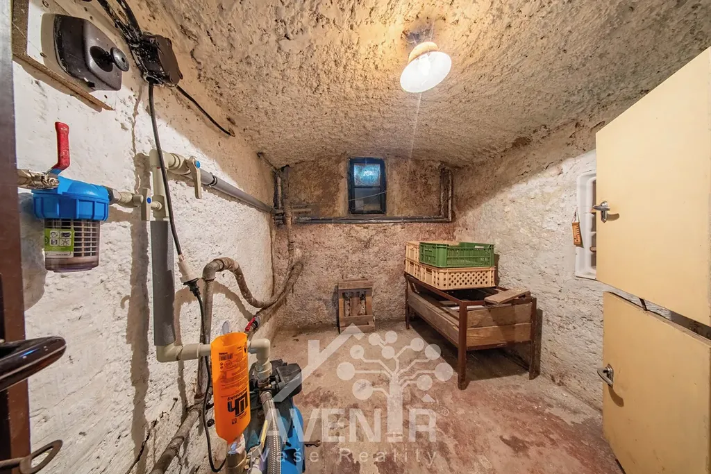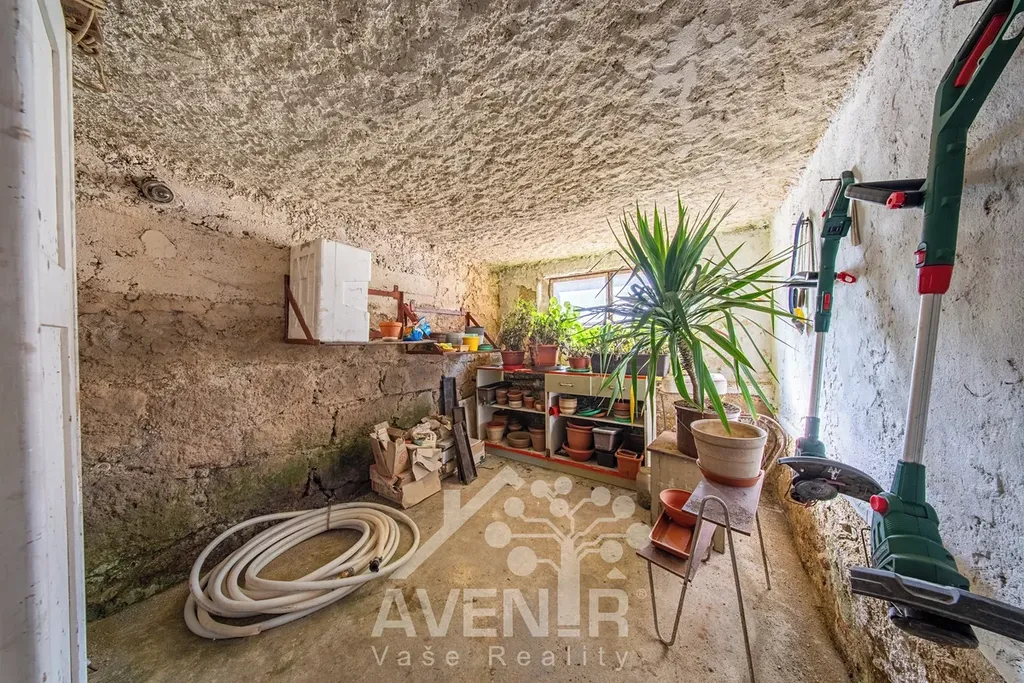 1. PP - garáž / dílna 5 x 5,4 m (výška vrat 1,77 m), sklípek, menší místnost (nyní na květiny).