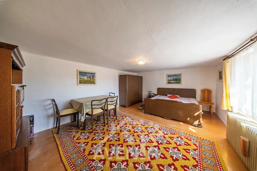 Součástí prodeje je i jiná dvoupodlažní stavba, která může sloužit jako garáž nebo dílna - 4,5 x 3,6 m (výška vrat 1,97 m).