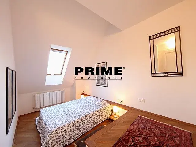 Elegantní, zrekonstruovaný, zařízený, 2 ložnicový, mezonetový byt se 2 koupelnami k pronájmu, 3+kk, 96m2, s balkonem 4m2 (orientace do vnitrobloku), situovaný v 5. a 6. patře kompletně zrenovovaného novobarokního domu s výtahem. Budova se nachází v boční ulici u Karlova náměstí, na rozhraní Prahy 1 a Prahy 2, v blízkosti zastávky tramvaje, stanice metra Karlovo náměstí, obchodů, supermarketu Albert, kaváren, restaurací a pouze pár minut chůze k nákupnímu centru Quadrio i na nábřeží a 10 minut chůze na Václavské náměstí.