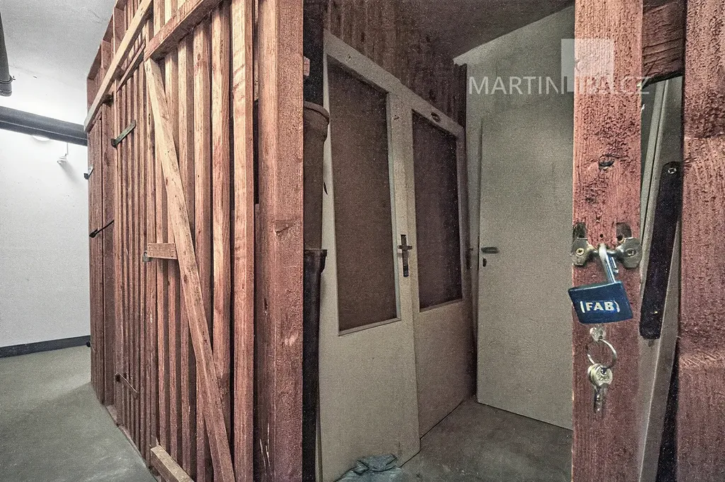 K bytu patří sklepní kóje a velké plus je přístup: výtahem se bez jediného schodu dostanete z přízemí až k bytu, ale i do sklepa. Praktické nejen pro lidi s omezeným pohybem, ale i pro kočárky nebo kola.