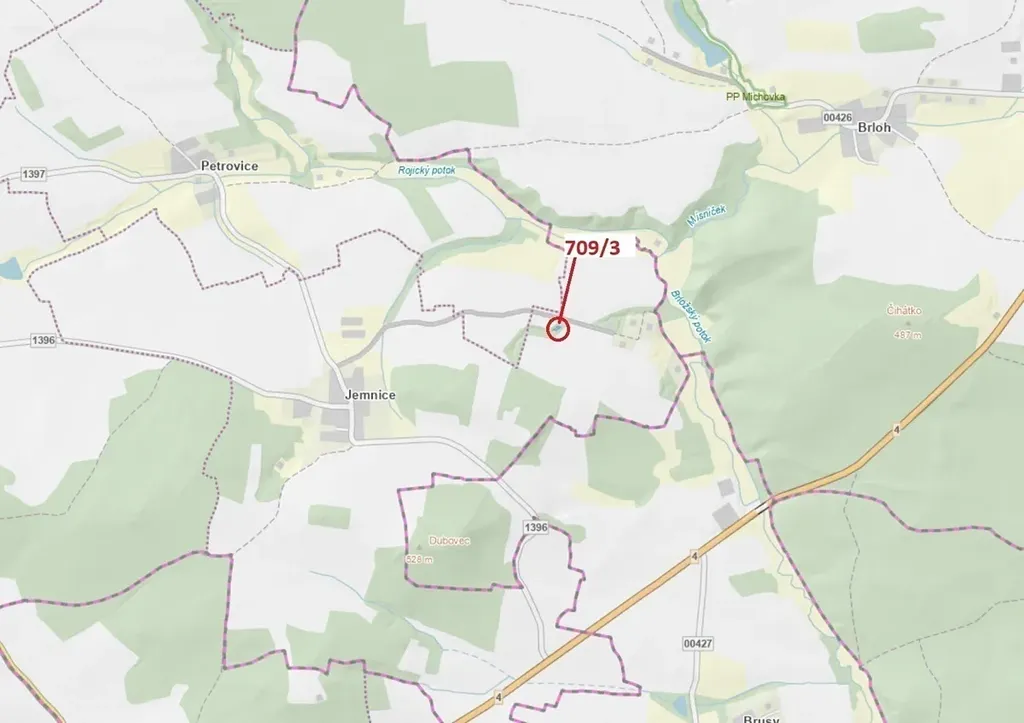 Lesní pozemky o výměře 301 m2, parcelní číslo 709/3, podíl 1/1, katastrální území Jemnice u Oseka, obec Osek, obec s rozšířenou působností Strakonice, okres Strakonice, Jihočeský kraj. Po těžbě.