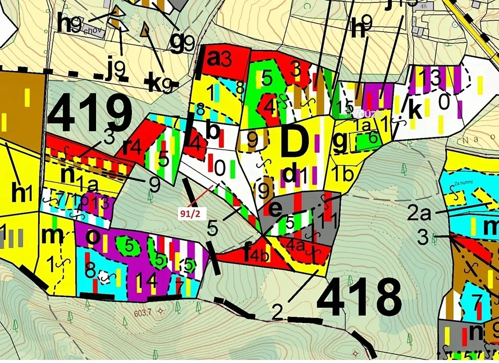 Lesní pozemek o výměře 1363 m2, parcelní číslo 91/2, podíl 1/1, katastrální území Velešice u Pačejova, obec Pačejov, obec s rozšířenou působností Horažďovice, okres Klatovy, Plzeňský kraj. Po těžbě.