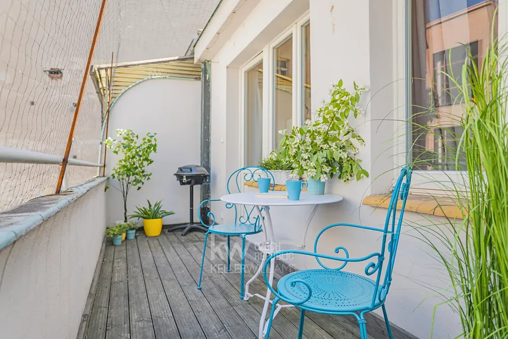 Tak to mám přesně pro Vás útulný, krásně zrekonstruovaný byt v klidné ulici U Půjčovny. Byt se nachází ve čtvrtém patře bez výtahu v bytovém domě ve vnitrobloku. V moderní kuchyni najdete pračku, myčku, vestavěnou troubu a spoustu úložného prostoru. Do ložnice proudí přirozené světlo pomocí vkusně zvolených luxfer. Okno zde není. Velký plus bytu je dalších 8,2m2 velká terasa, která v teplých měsících přidává k bytu další místnost. Byt se pronajímá zařízený, ale ne vše co vidíte na fotkách je součást bytu. Na fotkách je navíc - okrasný nábytek a kytky na terase (je zde obyčejný stolek a dvě židle), v obývacím pokoji není velká televize s TV stolkem, konferenční stolek a křeslo - je zde pouze pohovka. Vše ostatní jako na fotkách.