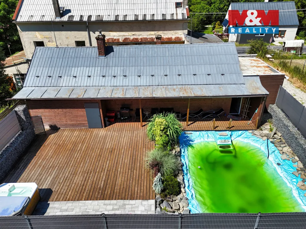 Na rozlehlém pozemku o výměře 11 591 m² se nachází dvě studny, kůlna, plechová garáž, sklep a zpevněné plochy, které poskytují dostatek prostoru pro další využití i rozvoj projektu.