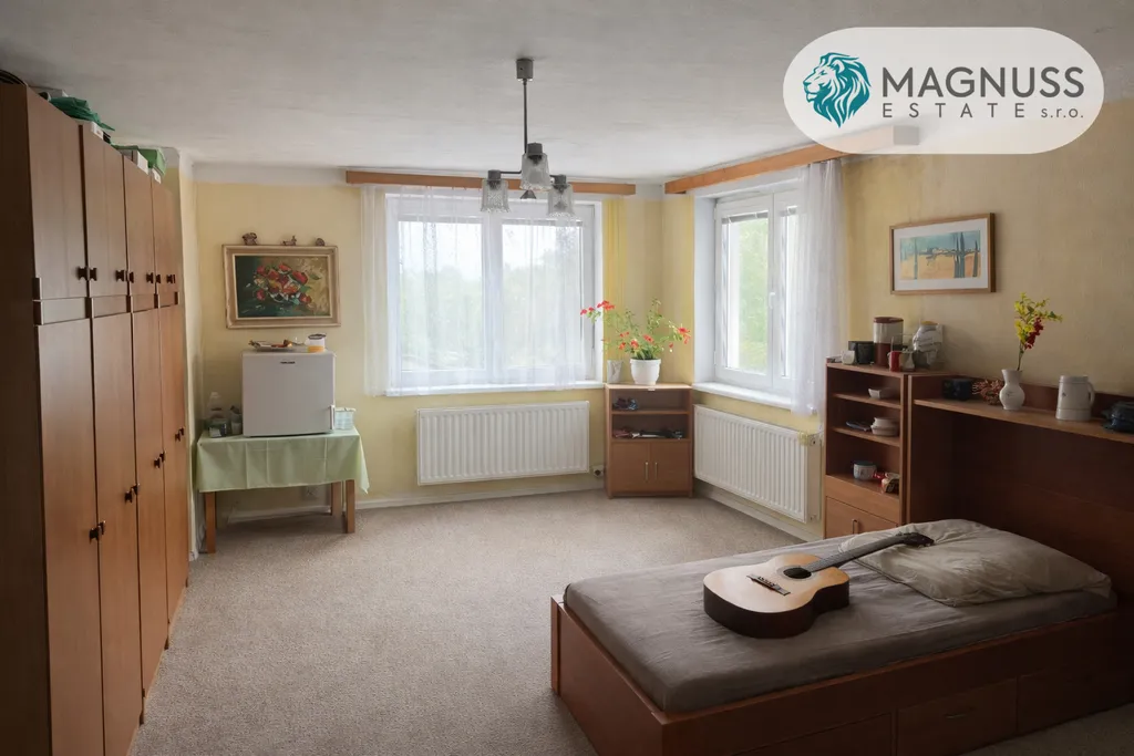 Dům o užitné ploše cca 221 m² je dispozičně řešen jako dvoupodlažní 7+2 a nachází se na prostorném pozemku o celkové výměře 1 800 m², z čehož samotná zahrada tvoří 1 304 m².