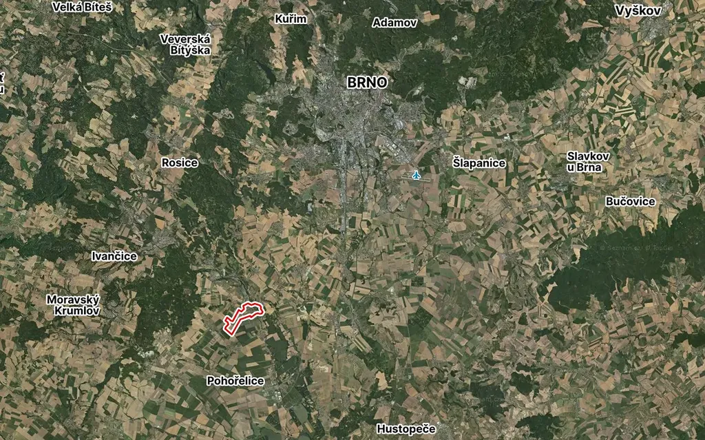 Pozemek je dokonale rovinatý a nachází se na dobře přístupném místě přímo u obecní komunikace, což zajišťuje pohodlný příjezd i možnost napojení na inženýrské sítě. Obec nabízí klidné bydlení s dobrou dostupností do okolních měst – Dolní Kounice (cca 5 minut) a Pohořelice (cca 10 minut), kde je k dispozici kompletní občanská vybavenost.