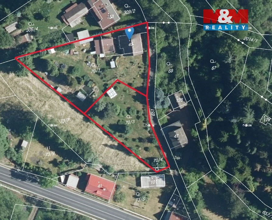 Velkou výhodou je, že pozemek je rozdělený a jeho část je stavební – nabízí tak možnost další výstavby nebo samostatného prodeje.