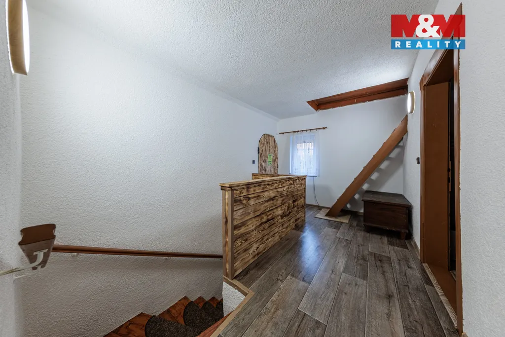 Nemovitost je prakticky soběstačná – má vlastní studnu a vytápění na tuhá paliva s rozvody teplého vzduchu. Dům prošel rekonstrukcí (nová střecha, plastová okna, částečné zateplení, podsklepení). Půdní prostor nabízí možnost dalšího rozšíření.