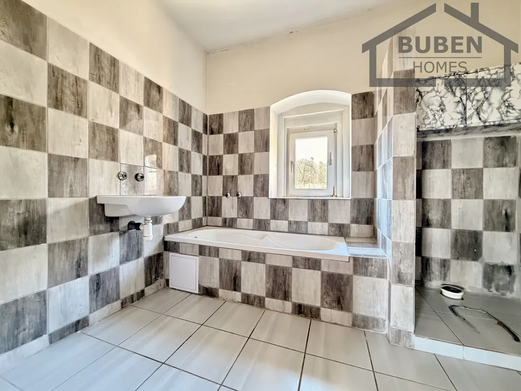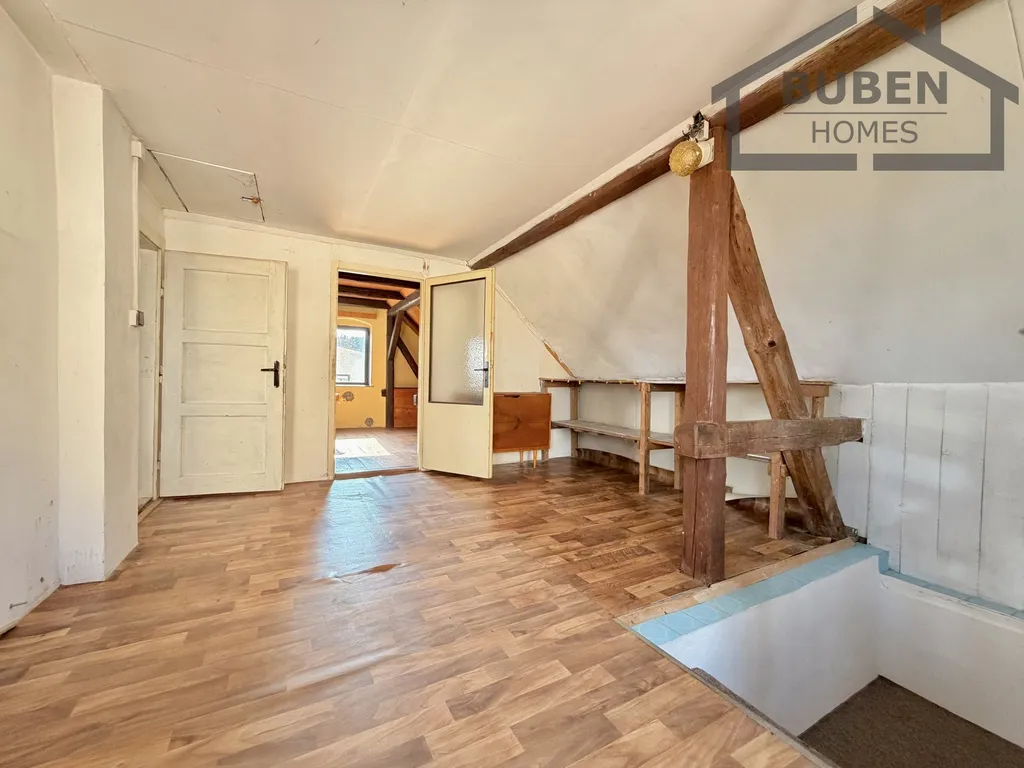 Dům je částečně podsklepený a má obytné podkroví. Užitná plocha domu je cca 140 m² a zastavěná plocha je 82 m². Z verandy se vstupuje do přízemí domu, kde se nachází chodba, kuchyň, obývací pokoj, ložnice, koupelna s WC, vstup do sklepa a schodiště. V podkroví domu se nachází prostorná hala, ze které je vstup do dvou pokojů. Ve sklepní části domu se nachází kotelna. Ohřev vody je zajištěn el. bojlerem a rozvody topení jsou připraveny na napojení kotle na tuhá paliva nebo případně na elektrokotel. Dům je po částečné rekonstrukci - rozvody elektřiny, topení, vody a odpadů, podlahové krytiny, obklady v koupeně a výměna obložkových zárubní v přízemí. Dům je napojen a elektřinu, vodovod a odpad je sveden do jímky za domem.