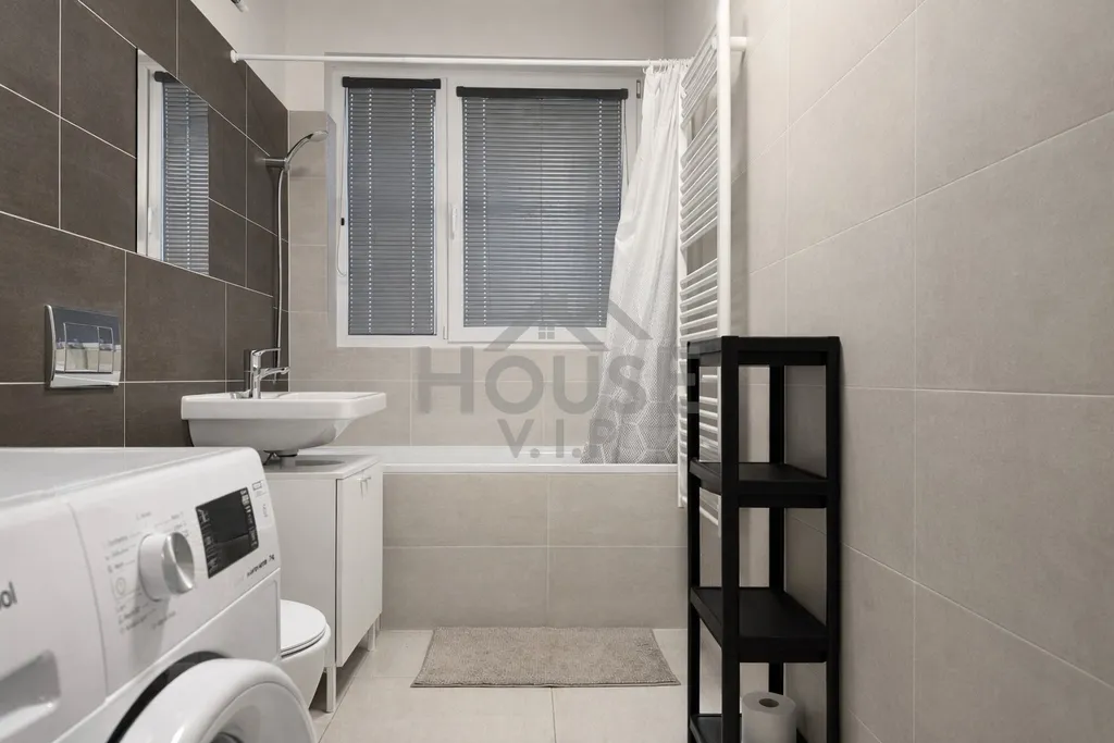Dispozice bytu zahrnuje předsíň s vestavěnou skříní, pokoj s moderní vybavenou kuchyňskou linkou a vstupem na zahradu, samostatný pokoj s vestavěnou skříní, koupelnu s vanou, toaletou a pračkou. Podlahy tvoří kombinace PVC a dlažby, plastová okna jsou orientována na severozápad. Byt je připravený k okamžitému nastěhování.