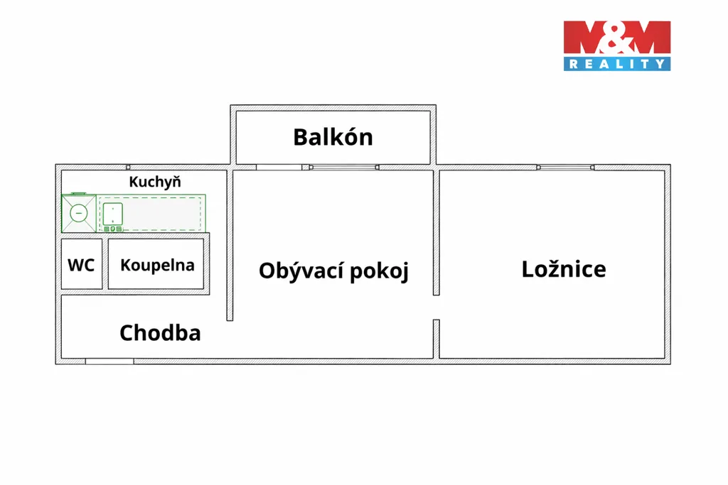 Byt se nachází ve 2. patře bytového domu bez výtahu. Dispozice nabízí komfortní bydlení jak pro jednotlivce, tak pro pár. Součástí bytu je vstupní chodba s prostornou vestavěnou skříní, koupelna s vanou, samostatná toaleta, kuchyň s novou kuchyňskou linkou, obývací pokoj se vstupem na slunný balkon vhodný k relaxaci a prostorná ložnice. K bytu náleží také sklep.