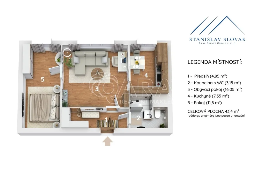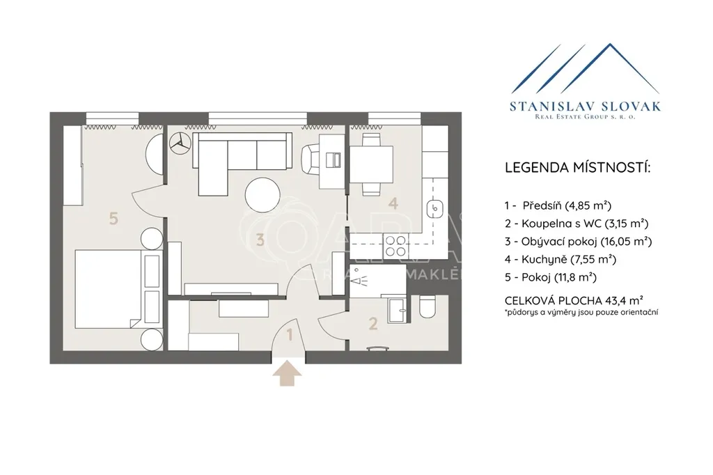 Byt má dispozici 2+1 a 43 m². Je to velikost, která dává smysl jak pro vlastní bydlení, tak i jako investice. V bytě už proběhly základní úpravy, jako jsou nové PVC podlahy, jinak se ale stále jedná o původní stav včetně umakartového jádra.
