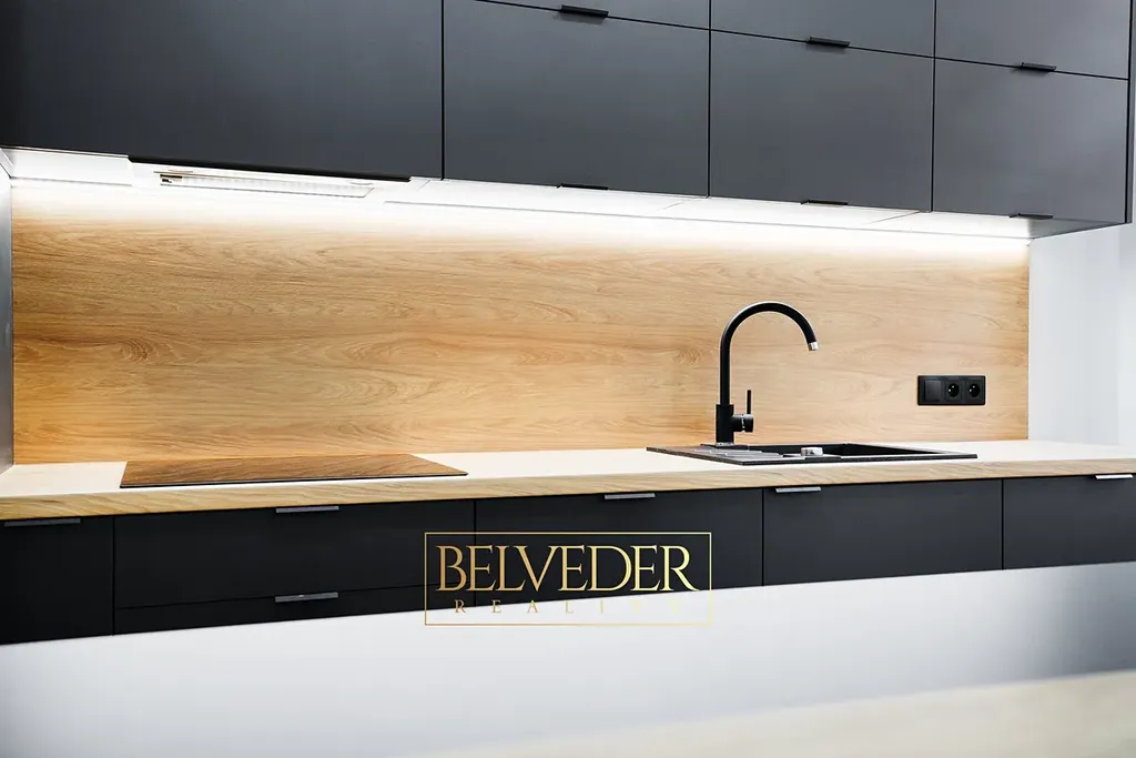 Interiér je vybaven podlahovým vytápěním s vlastním termostatem v každé místnosti, kvalitními laminátovými podlahami a moderní kuchyňskou linkou s vestavěnými spotřebiči, včetně horkovzdušné trouby, mikrovlnné trouby a vestavěné lednice; nechybí ani prostorná koupelna s vanou.
