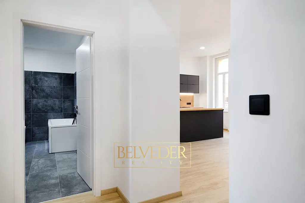 Byt po kompletní, velmi zdařilé rekonstrukci působí vzdušně a světlé pokoje orientované do málo frekventované ulice zajišťují klid i příjemný výhled.