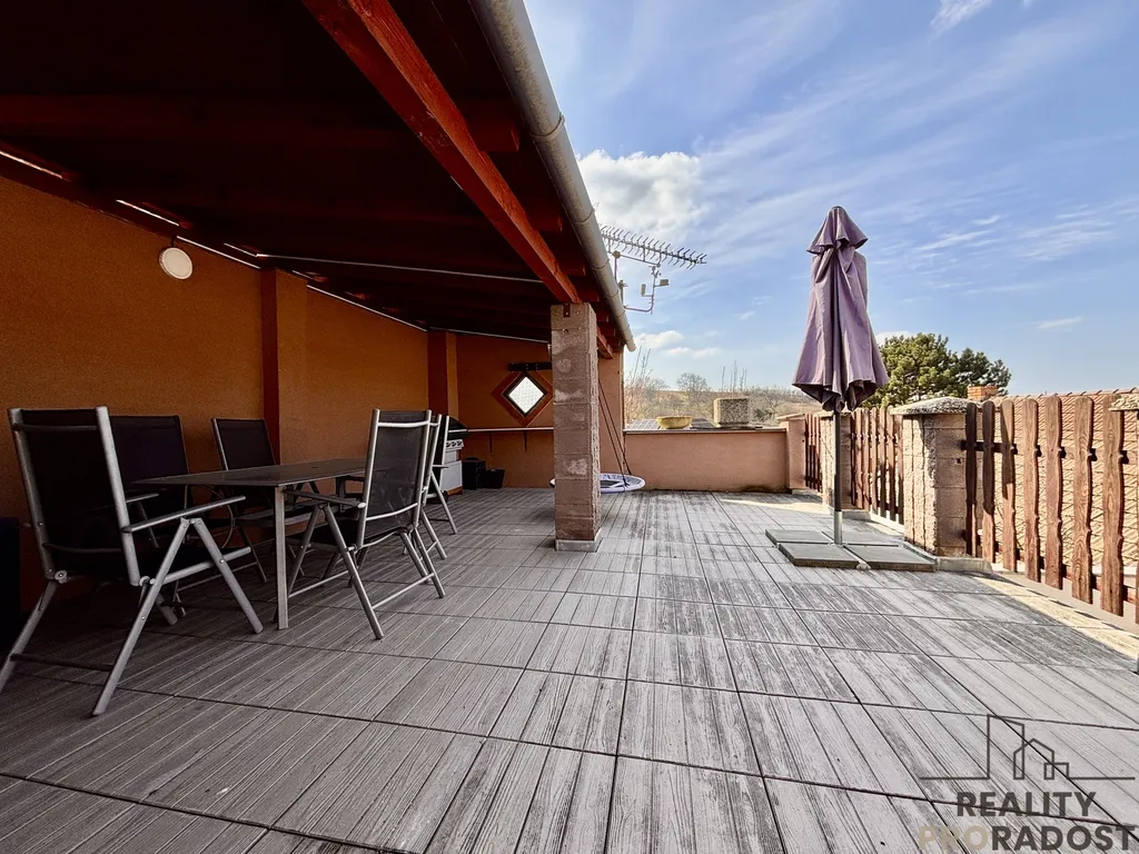 -vstup na druhou, zastřešenou terasu – ideální pro využití i za nepříznivého počasí