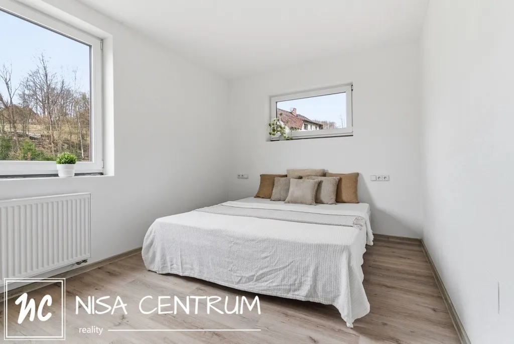 Nabízíme k prodeji novostavbu rodinného domu v centru Benešova u Semil, která stojí na vlastním pozemku o výměře 999 m². Dům je rozdělen do tří podlaží a díky svému velkorysému prostoru nabízí i možnost vybudování dvou samostatných bytových jednotek. Celý objekt je osazen kvalitními plastovými okny s izolačními trojskly a po dokončení podle projektu se u domu počítá s velmi úspornou energetickou náročností v klasifikační třídě B. Hlavní obytná část o ploše 63,46 m² je již kompletně hotová v rozsahu, který vidíte na fotografiích, a zahrnuje vstupní chodbu, ložnici a koupelnu se sprchovým koutem i toaletou. Dominantou tohoto patra je obývací pokoj s kuchyňským koutem a vstupem na balkon, přičemž je zde již položena vinylová podlaha a dlažba. Stávající kuchyňská linka je instalována pouze jako provizorní a nejedná se o finální výsledek, což vám dává možnost vybrat si budoucí kuchyni přesně podle svého vkusu.