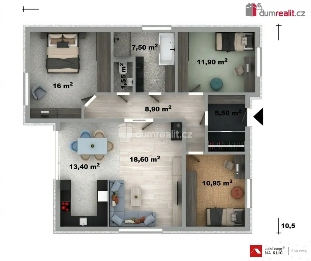 Dumrealit.cz Vám zprostředkuje exkluzivní prodej domu na klíč typu Markéta o velikosti 4+kk o podlahové výměře 94 m² v Uherském Brodě části Těšov. Součásti uvedené ceny, která již zahrnuje DPH je dům v provedení na klíč, inženýrské sítě (mimo plynu), příjezdová komunikace, veřejné osvětlení, připojené místo EDG (EON), pozemek a veškeré projektové práce a stavebního povolení. Pozemek ( C ) o rozloze 1221 m² je na klidném místě obce se skvělou dostupností do Uherského Brodu či Luhačovic. Šíře pozemku je 22 m. Navíc k nabízenému pozemku je možnost přikoupit i podíl na pozemku za zahradou p.č 1144/1. Dle územního plánu jsou pozemky vedeny a schváleny pro rodinné bydlení. Parametry uvedeného domu: užitná plocha 94 m² zastavěná plocha domu 115 m². Dispozici v domě nebo celkově upravit rozměr domu je umožněno. Možnost změnit na jiný dům dle vlastních požadavků. V projektu jsou možné variabilní úpravy dispozice (posuny příček či oken). Patrový dům je ideální pro 5 člennou rodinu s nízkými provozními náklady. Uvedená cena je za pozemek, kompletní stavbu domu v provedení na klíč, projektové dokumentace, vyřízení stavebního povolení, základové desky až po kolaudaci. V uvedené ceně můžete počítat také s finálními povrchovými úpravami exteriéru i interiéru, a to včetně elektroinstalací, sanitárního vybavení s bateriemi, interiérovými dveřmi včetně obložek a vytápění bude řešeno teplovodním podlahovým topením v kombinaci tepelného čerpadla se 180L zásobníkem na teplou vodu. Dle dohody změníme systém vytápění nebo vystavíme komín pro krbové kamna nebo pro využití krbové vložky. Kryté garážové stání spojené s domem nebo venkovní krytou či nekrytou terasu za příplatek. Pro náročnější klienty máme nabídku nadstandardního vybavení chytré domácnosti, klimatizaci, externí žaluzie, rolety, rekuperaci nebo fotovoltaiku. Doba výstavby cca 12-13 měsíců od vydání stavebního povolení a stavbu zahájíme do 10 dnů od jeho vydání. Smlouvy o dílo zašleme na vyžádání včetně položkového rozpočtu. V blízkosti je veškerá občanská vybavenost. Financování zajišťujeme a můžete využití našich služeb, při prodeji Vaší nemovitosti. Doporučuji jednak prohlídku pozemku, tak nabízeného domu hned v sousedství v provedení na klíč. Dle zájmu zašleme položkový rozpočet. Pozemky a domy se dají různě kombinovat. Více informací u makléře. Ev. číslo: 653924.