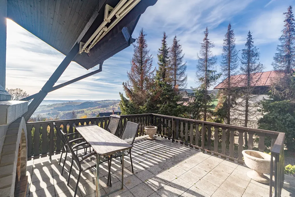 Dům je řešen jako vícegenerační a zároveň nabízí možnost provozování penzionu – k dispozici je celkem několik samostatných bytových jednotek (např. 3+1, 2+1, 4+1 a další apartmány), každá s vlastním zázemím. Nechybí krbová kamna, terasa, balkon s krásnými výhledy ani sauna pro dokonalou relaxaci po dni na horách.