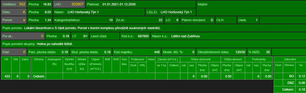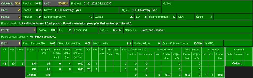 Prodej lesního pozemku v katastrálním území Lštění nad Zubřinou, obec Blížejov, okr. Domažlice. Jedná se o pozemek p.č. 566/6 o výměře 4.481 m². Pozemek je situován na mírně svažitém terénu s přístupem po lesní lince z vrchní strany pozemku. Na ploše pozemku se dle platných LHO nachází prořídlý lesní porost osiky a borovice ve věku 79 let, lesní porost smrku a břízy ve věku 15 let a mladý, pouze částečně zajištěný lesní porost listnáčů z přirozené obnovy ve věku 5 až 7 let. Pozemek sousedí s lesním majetkem LČR. Foto je z měsíce března 2026. List vlastnictví č. 542. Informace na tel. nebo e-mailu.