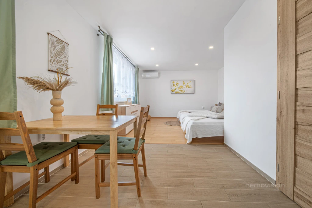Dům o užitné ploše 111 m², stojící na pozemku 228 m², je prakticky rozdělen na čtyři samostatné apartmány, které umožňují maximální flexibilitu využití.