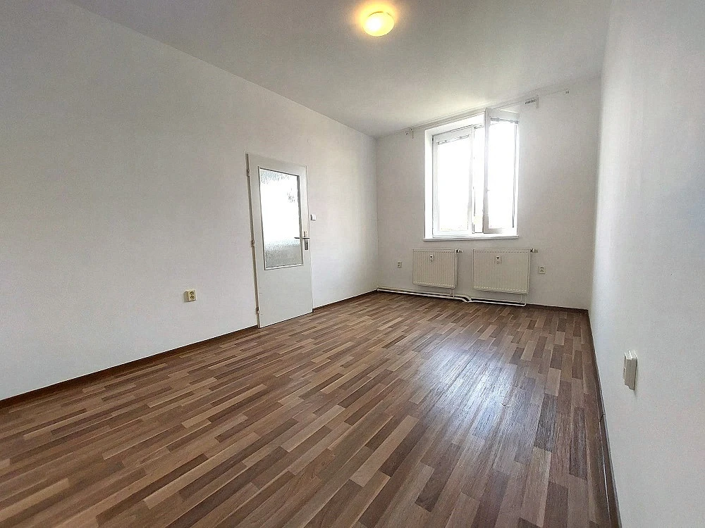 Dispozice - obývací pokoj s kuchyňským koutem 20 m², samostatný pokoj 15 m², předsíň, koupelna se sprchovým koutem společná s WC.