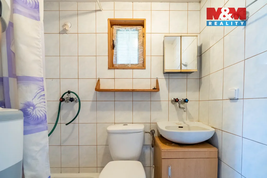 Dispozice: vstupní předsíň s kuchyní a jídelním koutem, obytná místnost s krbovými kamny, koupelna se sprchovým koutem a toaletou. Napojeno na elektřinu a kanalizaci, voda je čerpána ze studny, ohřev vody zajišťuje bojler. Příjezd až k chatě je zajištěn.