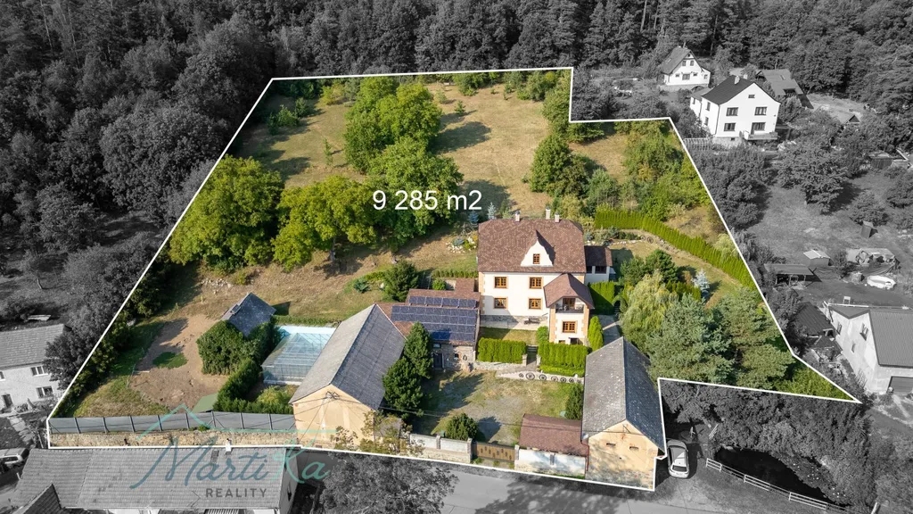 Pozemek o rozloze 9 285 m² vytváří jedinečný prostor pro život v absolutním soukromí.