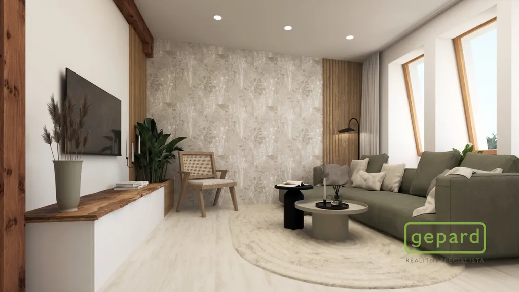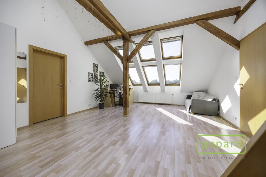 Aktuálně dispozičně řešený jako 2+kk o velkorysé ploše 99,3 m², ale s jasným potenciálem přeměny na plnohodnotné 3+kk. A ne jen teoreticky – úprava je reálně proveditelná a připravená.