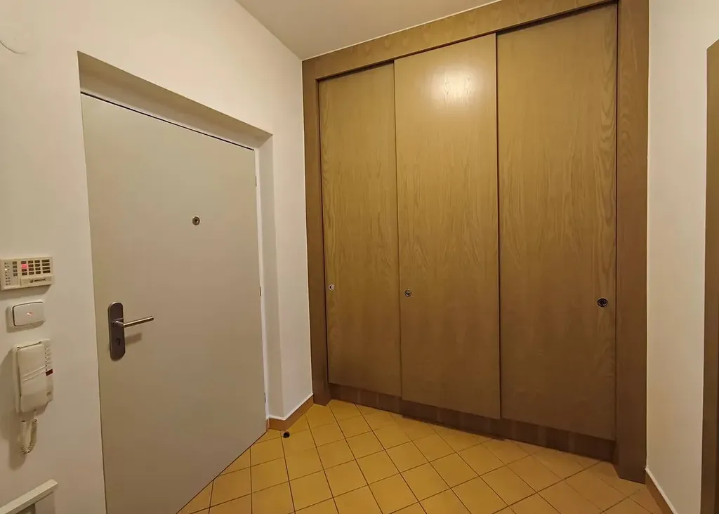 Kuchyňský kout je plně vybaven veškerými spotřebiči – k dispozici je lednice, trouba, varná deska, mikrovlnná trouba i myčka. V předsíni se nachází prostorná vestavěná skříň, která nabízí dostatek úložného prostoru. Koupelna je vybavena pračkou a dalšími úložnými prvky. Také součastí bytu je prostorná lodžie.