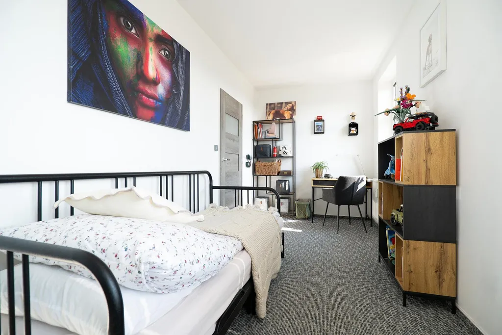 K bytu náleží kryté parkovací stání a sklep ve 4. nadzemním podlaží, který je díky střešnímu oknu příjemně prosvětlený, a nabízí tak ideální prostor nejen pro uskladnění věcí, ale i pro využití jako pracovna či menší kancelář.