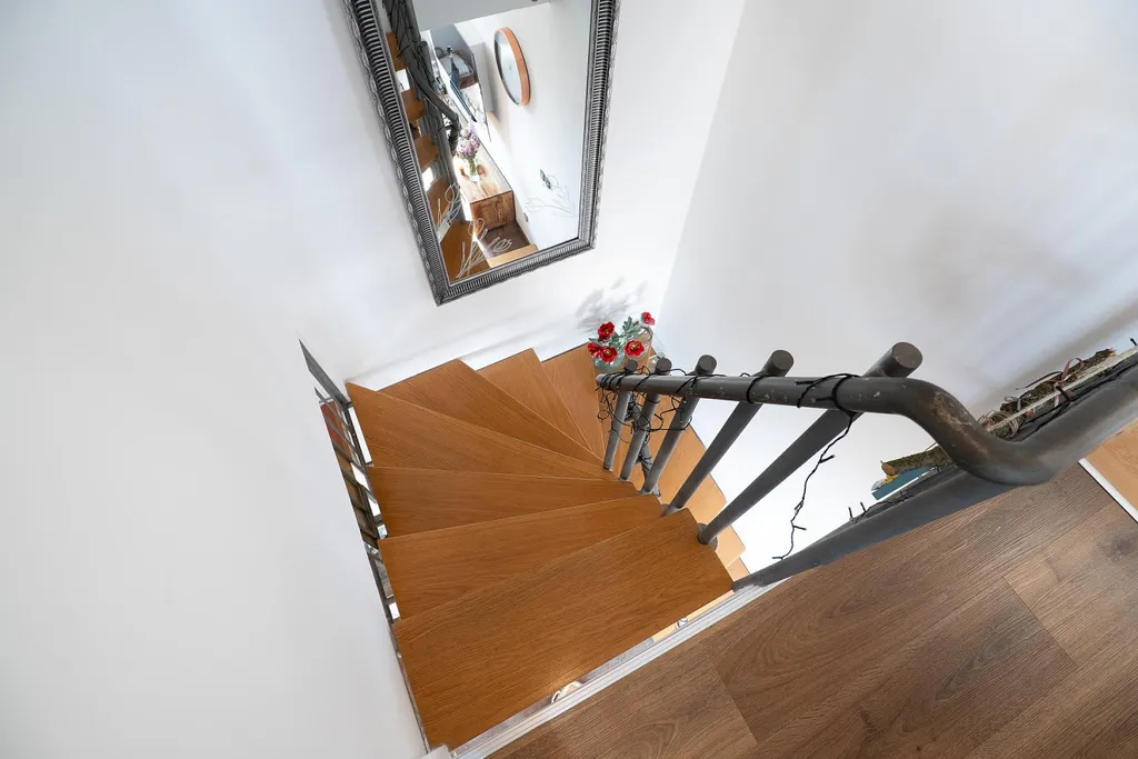 Dominantou spodního podlaží je prostorný obývací pokoj propojený s kuchyňským koutem, který vytváří otevřený a světlý obytný prostor ideální pro každodenní život i setkávání s přáteli. Kuchyň je prakticky řešená a nabízí dostatek pracovního i úložného prostoru. Součástí tohoto patra je také vstupní hala. V horním podlaží se nachází dvě ložnice, koupelna s WC, samostatná šatna a chodba. Z jedné z ložnic je vstup na balkon, který nabízí příjemné místo pro relaxaci.