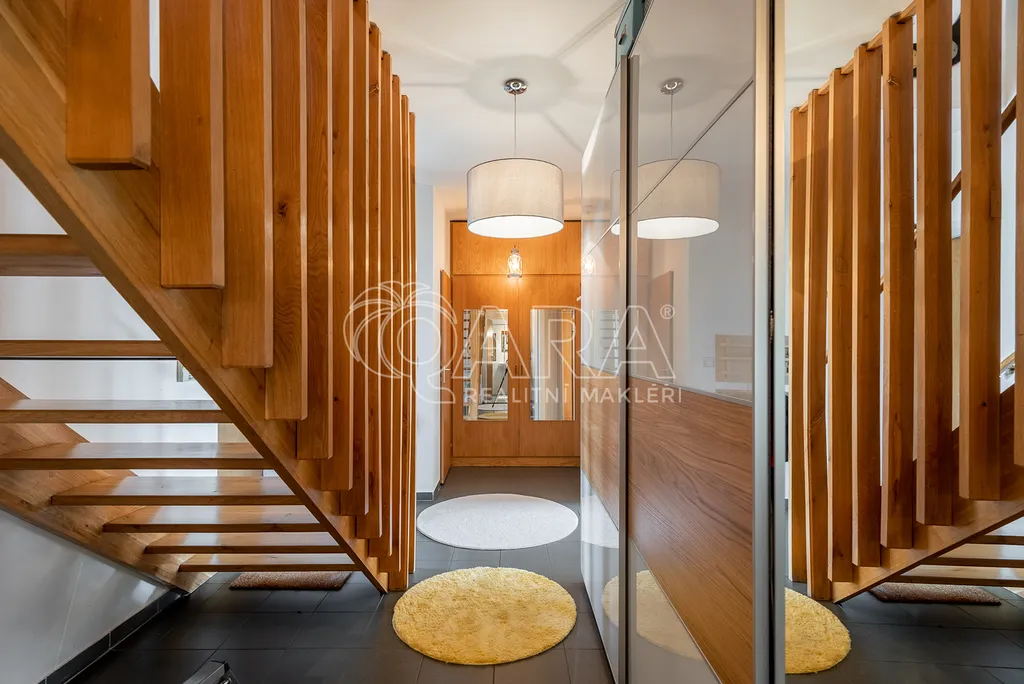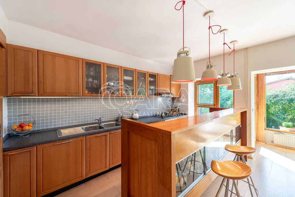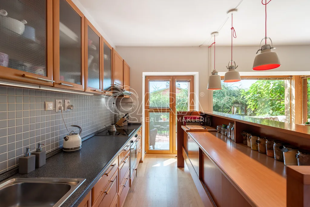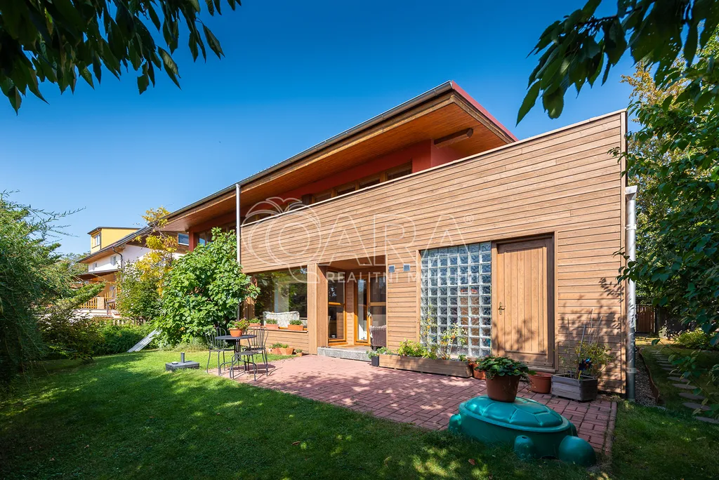 Nabízíme moderní prostornou vilu, která se nachází ve vyhledávané lokalitě pár minut od Prahy 6. Architektura a celkový koncept domu byly v roce 1998 oceněny titulem Dům roku.