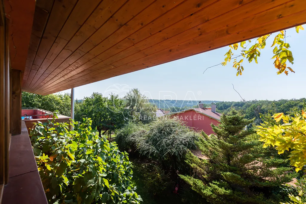 Dvoupodlažní dům 5+kk s garáží je charakteristický použitím přírodních materiálů a propojením se zahradou, která nabízí žádané soukromí. Důležitou součástí domu je rozlehlá terasa navazující na téměř všechny místnosti ve druhém podlaží. Díky krásnému výhledu na údolí je ještě umocněno všudypřítomné spojení s přírodou.