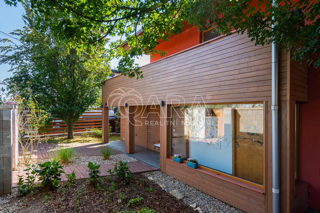 Součástí domu je rovněž garáž (27 m2). Na zahradě je vystavěný altán, kdy dole je úložný prostor a nahoře letní kuchyň s kouzelným posezením.