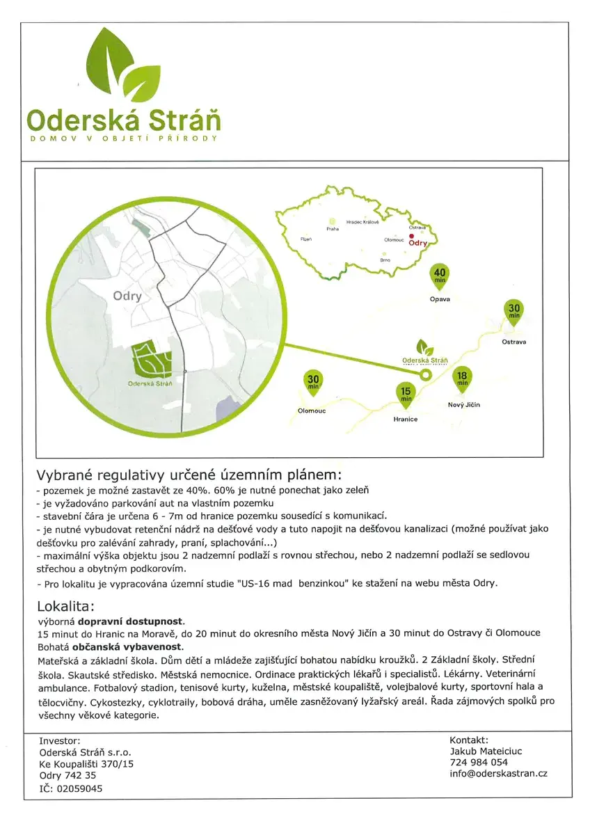 Pokud hledáte stavební pozemek v objetí přírody tak ODRY jsou tou správnou volbou. O Projekt Oderská Stráň I. a II. Etapa je velký zájem tak si nenechte ujít příležitost. V I. Etapě zbývají poslední pozemky ....
