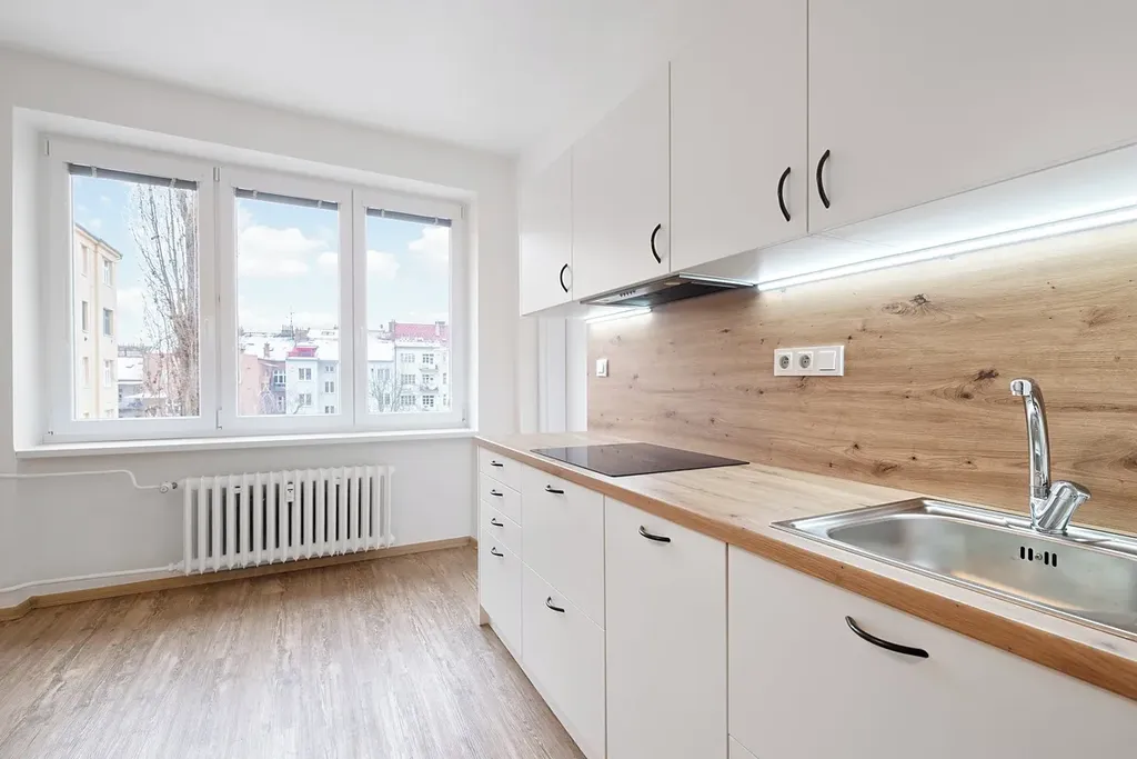 Byt je po kompletní rekonstrukci v roce 2021 (jádro, elektroinstalace, omítky, koupelna, WC, kuchyň, podlahy, dveře). Nabízí se nevybavený nábytkem. Všechna okna jsou orientována jižním směrem do klidného vnitrobloku domů, kde mají rezidenti také možnost trávit volný čas.