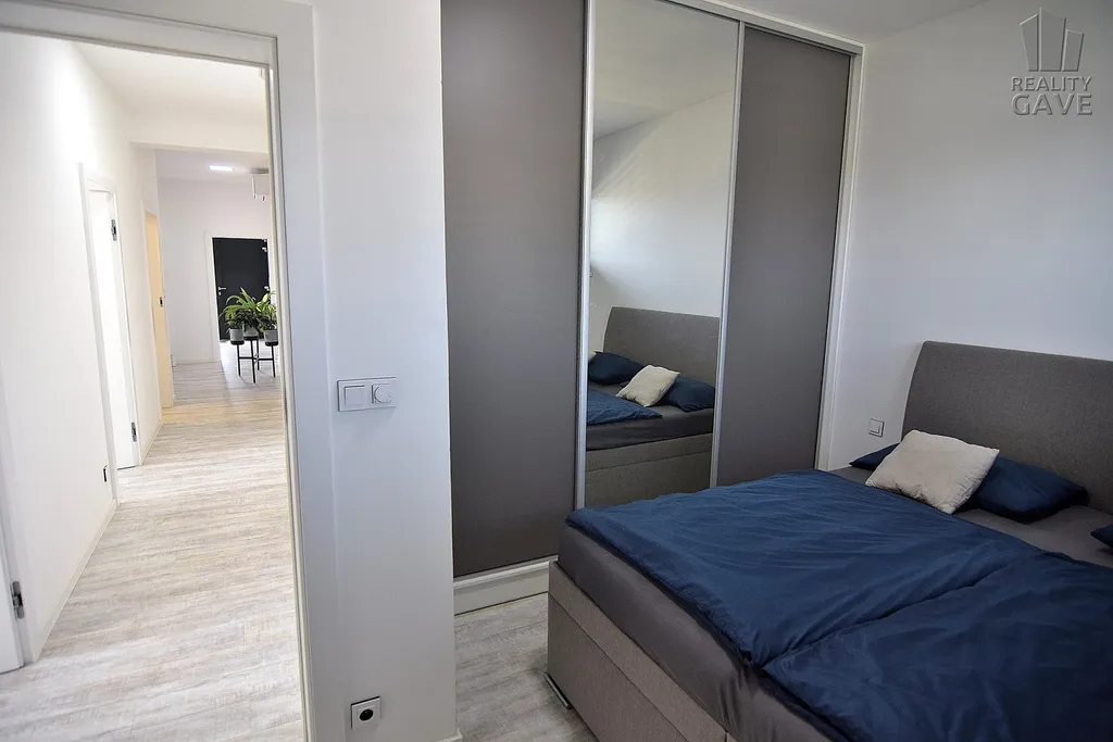 Dispozice 4+kk nabízí ideální rovnováhu mezi otevřeným společenským prostorem a klidovou zónou ložnic.
