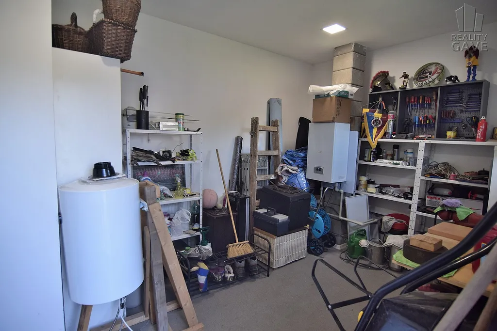 Praktická technická místnost nabízí prostor pro pračku, sušičku i technologie domu jako např. centrální vysavač.