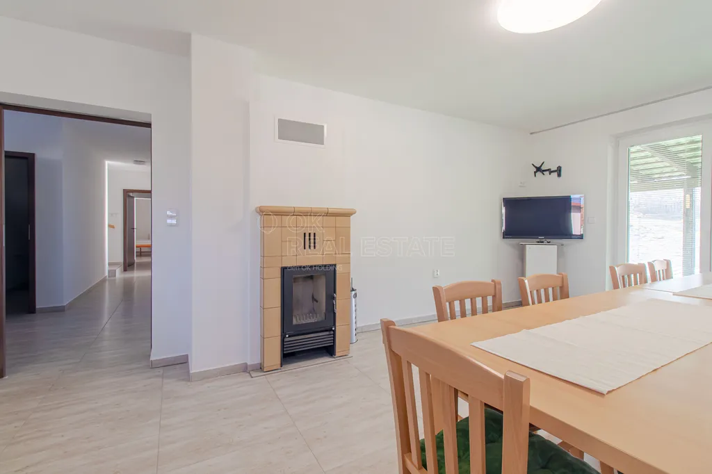 Dům je postaven z kvalitních cihel Heluz Family 38 2in1, které vynikají výbornými tepelně-izolačními vlastnostmi a přispívají k minimálním tepelným ztrátám. Vytápění řešeno pomocí tepelného čerpadla, které zajišťuje úsporný a ekologický provoz po celý rok. Díky této kombinaci dosahuje nemovitost energetické náročnosti třídy B – velmi úsporná, což se zásadně promítá do nízkých provozních nákladů a dlouhodobé ekonomické efektivity provozu se stabilním výnosovým potenciálem.