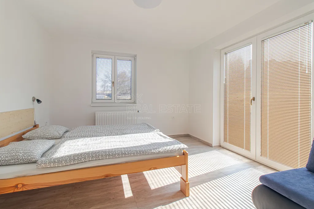 Apartmán č. 2 je útulnější jednotka s ložnicí a vlastní koupelnou se sprchovým koutem a WC, ideální pro páry nebo kratší pobyty.