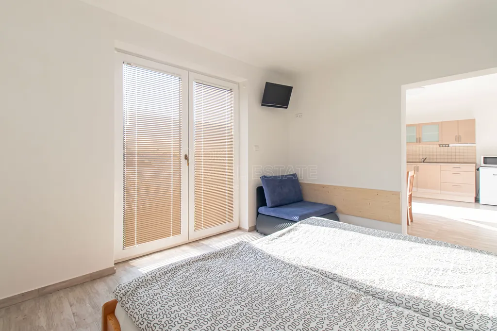Apartmán č. 3: ložnice, kuchyňský kout, koupelna se sprchovým koutem a WC – ideální pro jednotlivce nebo páry