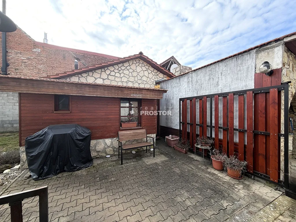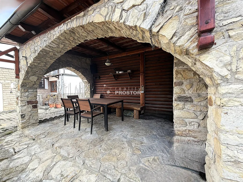 Hlavní budova se zastavěnou plochou 221 m² a dispozicí 5+1, poskytuje dostatek prostoru pro rodinný život. Velkým benefitem je samostatný dům o zastavěné ploše 65 m², který je vhodný pro vícegenerační bydlení, ubytování hostů nebo například pracovní zázemí. Domek disponuje kuchyňským koutem, toaletou, krbovými kamny a má připravený odpad pro sprchový kout, což umožňuje dokončení koupelny dle vlastních představ.