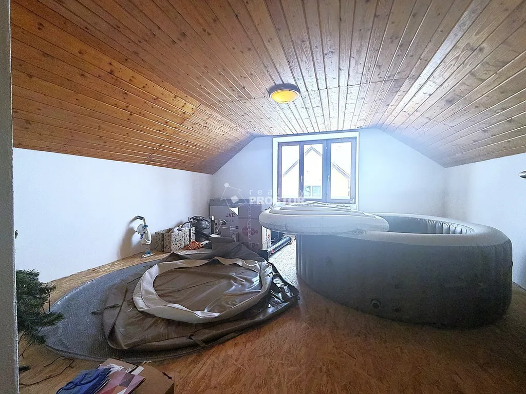 Na pozemku se dále nachází bazén s protiproudem a příjemné venkovní posezení s krbem a udírnou, ideální pro relaxaci i setkávání s rodinou a přáteli. Parkování je zajištěno samostatným vjezdem s posuvnou bránou s místem až pro tři vozy, k dispozici je také krytá garáž pro jedno auto. Dům je vybaven tepelným čerpadlem vzduch–voda pro úsporný provoz a samozřejmostí je vlastní studna.