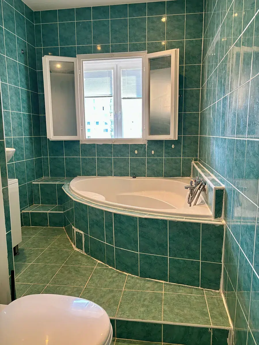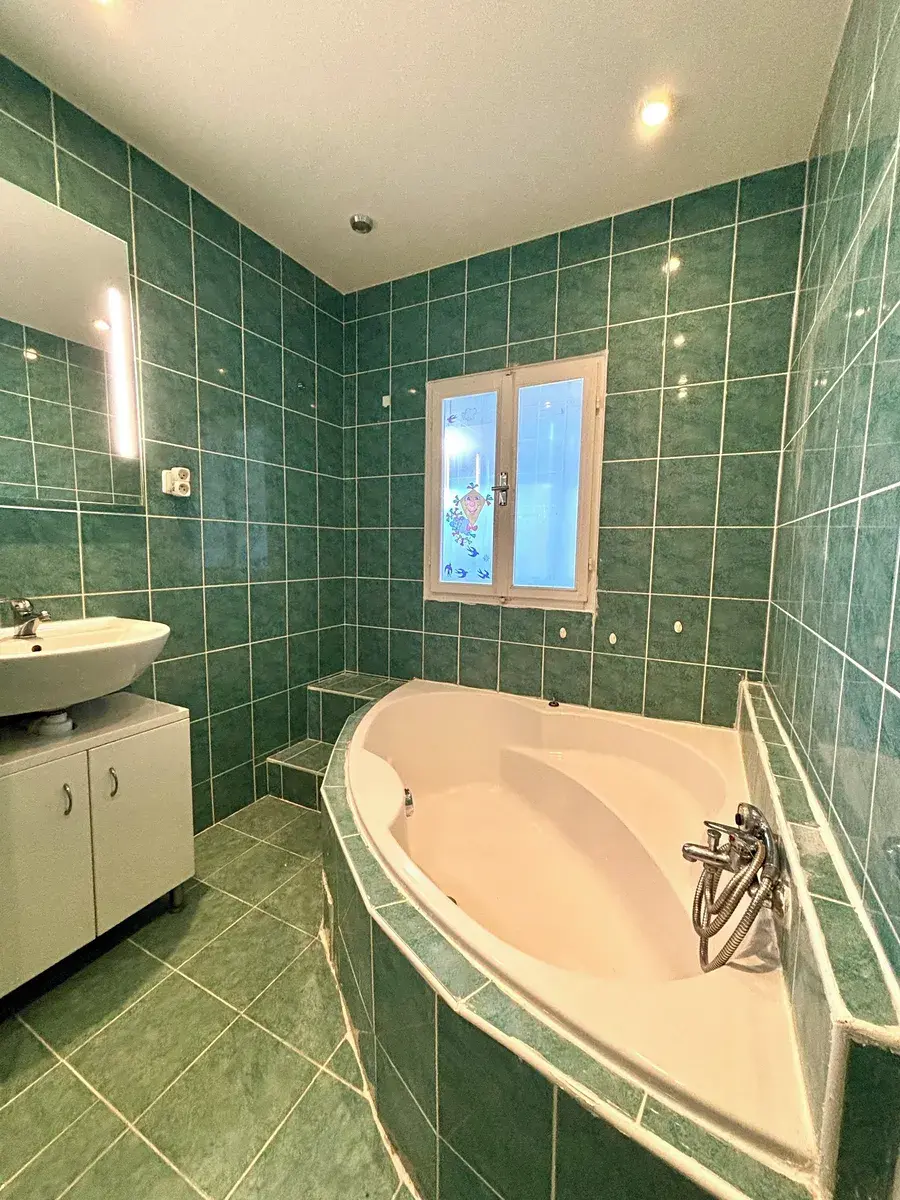• Prostorná zděnná koupelna s rohovou vanou, WC a skřínky