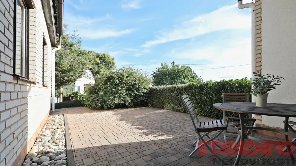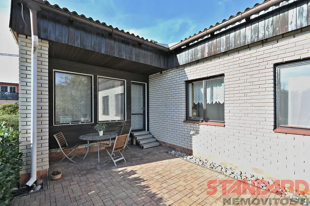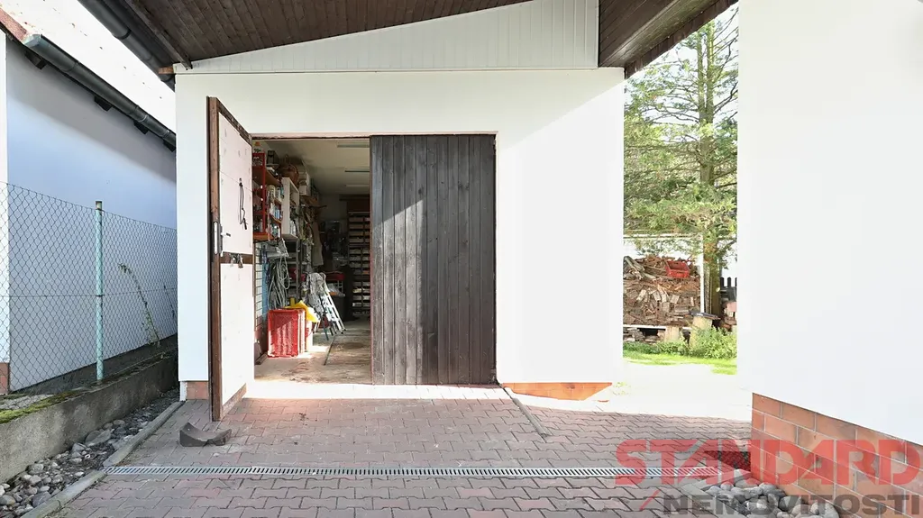 Pozemek má celkovou výměru 892 m² – zastavěná plocha a nádvoří 591 m², navazující udržovaná zahrada 301 m² se vzrostlými stromy a okrasnými dřevinami. K domu náleží samostatná garáž s montážní jámou, kolna a zahradní domek. V prostorném, částečně zastřešeném, průjezdu mezi domem a garáží lze pohodlně parkovat 2–3 osobní vozy, další vjezd a možnost parkování, je ze strany zahrady díky druhým vratům. Pozemek je kompletně oplocen, kolem domu a na terase je kvalitní zámková dlažba.