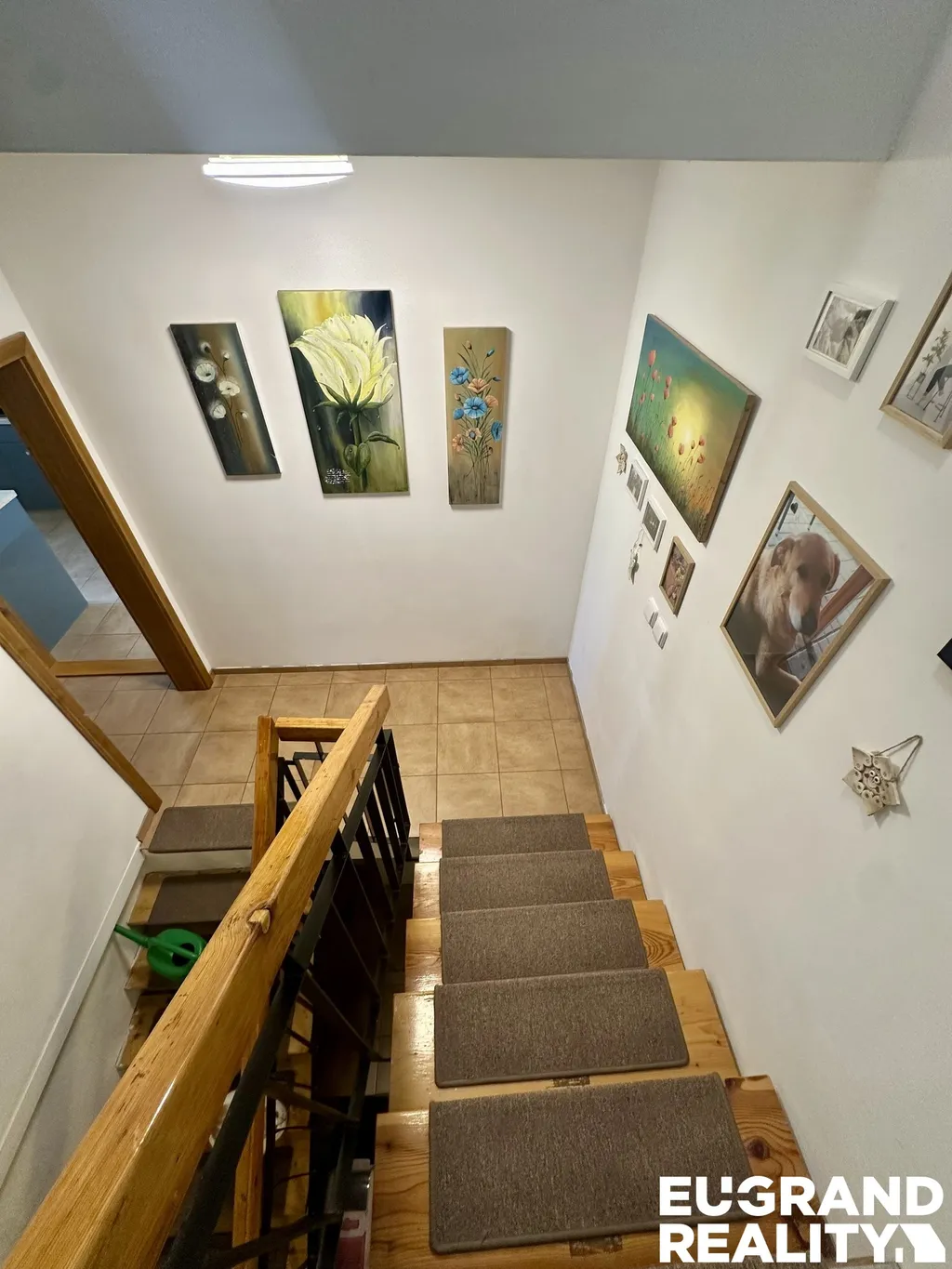 Patro: chodba s útulným posezením, prostorná ložnice a dva pokoje