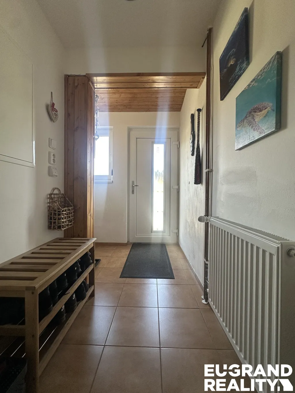 Přízemí: vstupní chodba, koupelna s WC, kuchyň, obývací pokoj s jídelnou a přímým vstupem na zahradu